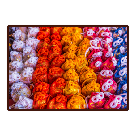 Bee Good Charm: A small trinket with everlasting flowers, a jade bee, and jade magatama. Meant to be used as an attachment for swords, bags, etc. For good luck!
