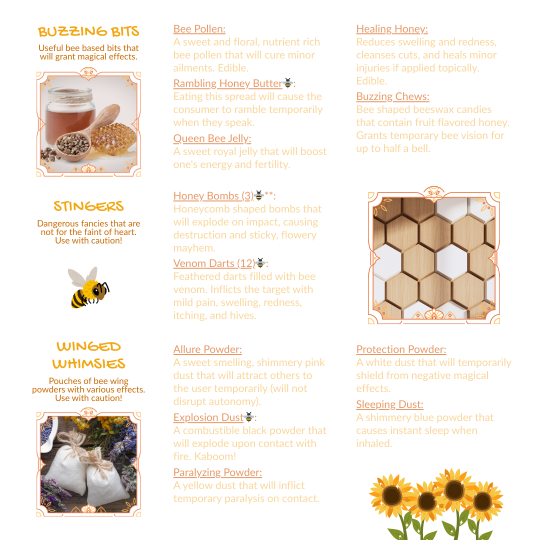 *Buzzing Bits items have magical properties that enhance health.